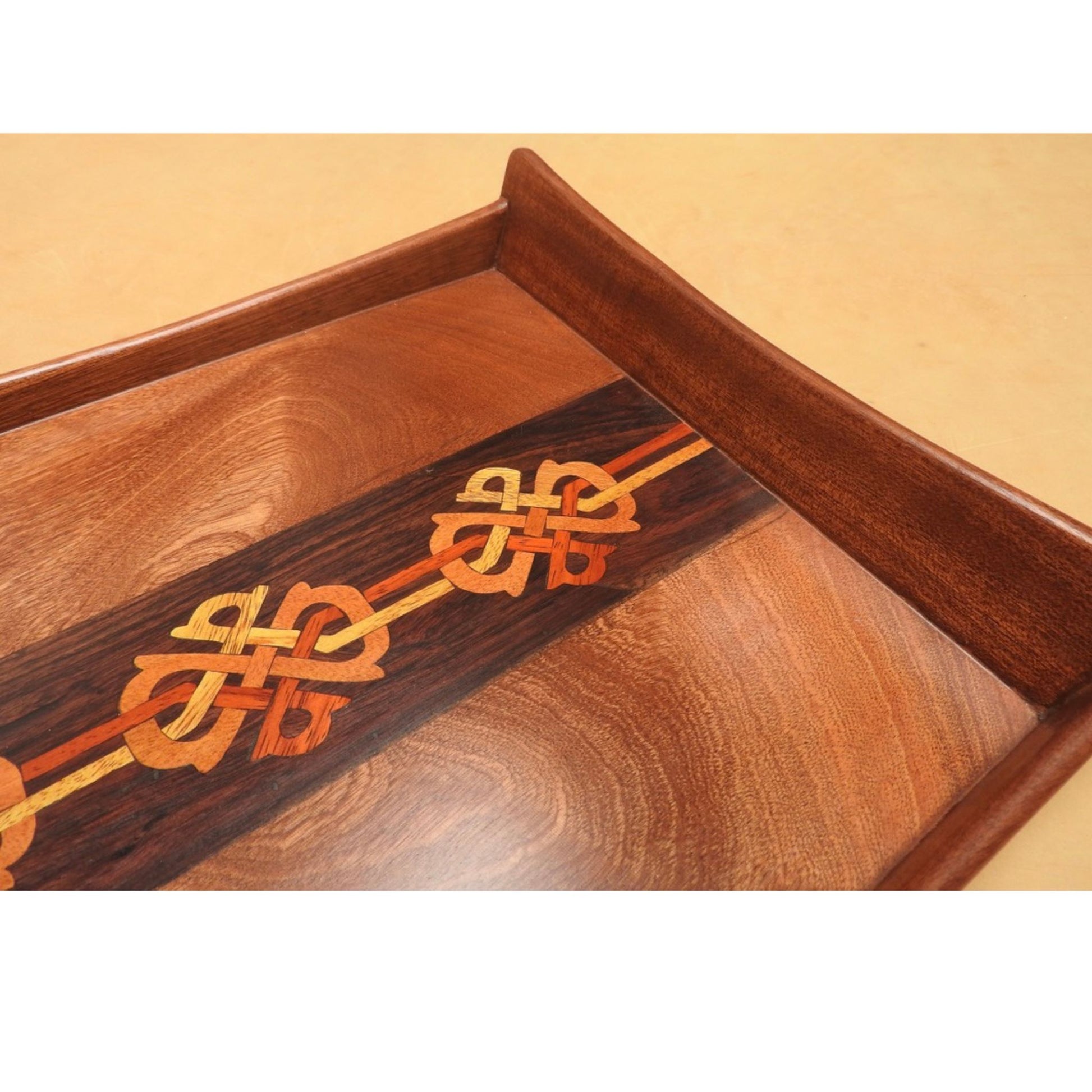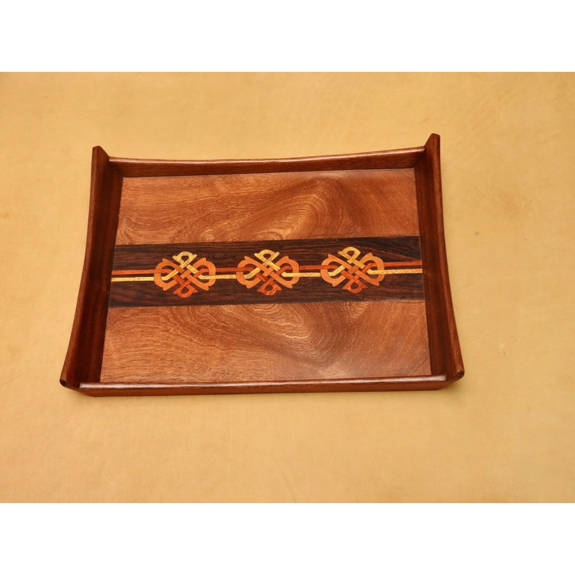 Made in Sapeli wood, the tray features a striking inlay of Rosewood, Paddock, Jackfruit, and other fine timbers, bringing warmth, history, and functionality into one refined design. Ideal for serving tea, snacks, or simply as a decorative accent on your table.
